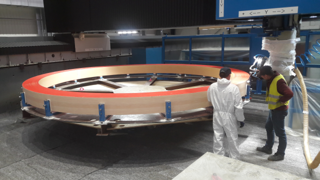 Les équipes de CNIM Systèmes Industriels ont mis au point un procédé très innovant pour fabriquer au millimètre près les Pre-Compression Rings, des anneaux en composite mesurant 5 mètres de diamètre. Ces anneaux sont de véritables éléments structurels du tokamak qui seront soumis notamment à de très fortes charges.