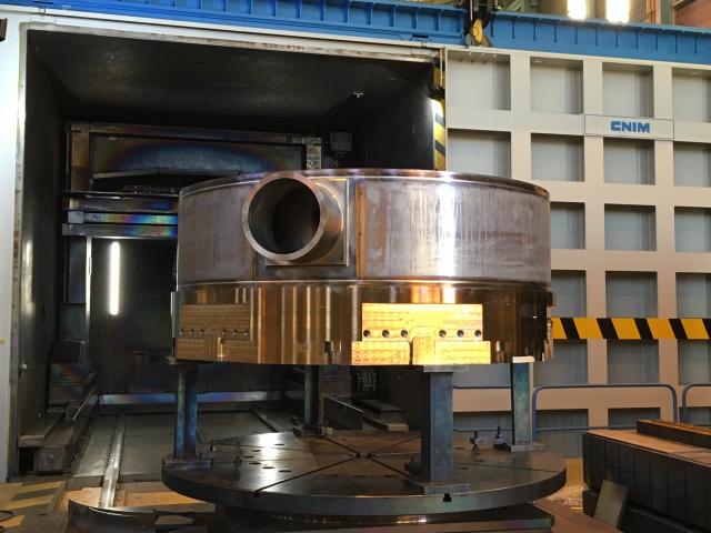 photo : élément du bloc pile du Réacteur Jules Horowitz (RJH) devant l'enceinte de soudage par faisceau d'électrons