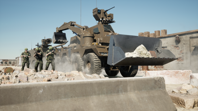 L’AUROCH est un véhicule d’aménagement du terrain, opérationnel sur zone de conflit et en cas de catastrophe naturelle. Protégé et mobile, il augmente les capacités du Génie dans les actions de déblayage de terrain et de rétablissement des itinéraires.