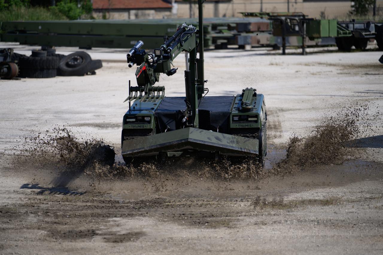 Détecter un itinéraire piégé et permettre au convoi de poursuivre sa route en toute sécurité : telle est la mission de ROCUS, le système robotisé (UGV) de CNIM Systèmes Industriels développé à partir de la plateforme THeMIS de Milrem Robotics.
