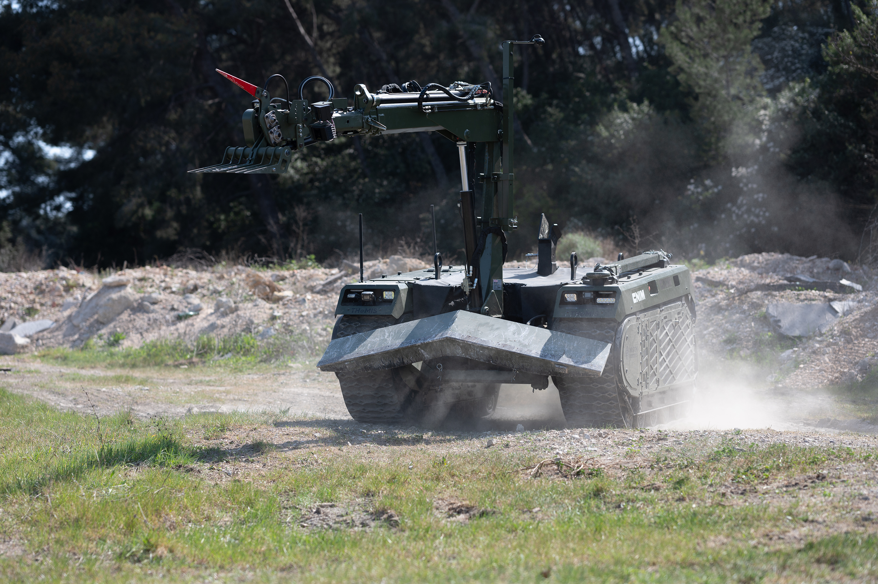 CNIM Systèmes Industriels a développé une solution d’ouverture d’itinéraire basé sur la plateforme THeMIS de MILREM Robotics afin de répondre aux besoins de sécurisation des convois militaires sur le théâtre d’opérations.