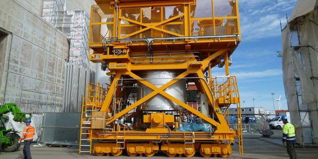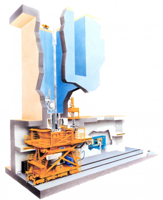 Our spent fuel transfer systems measure approximately 7m x 5m x 7m and weigh approximately 90 tons (110 to 130 tons loaded). The lifespan is around 60 years.
