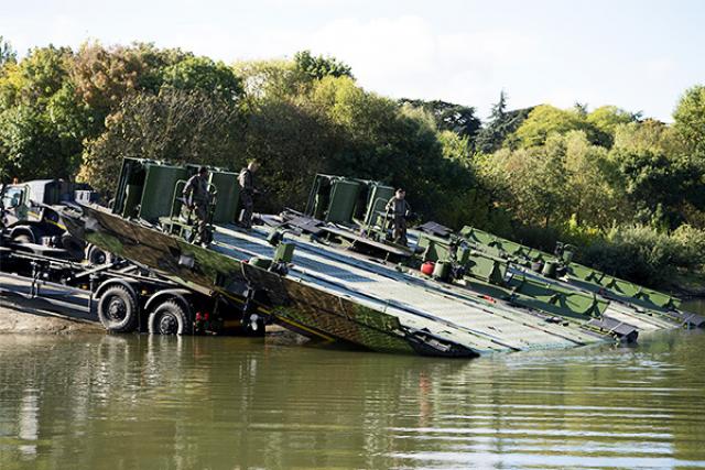 Without compromising the crossing capabilities of the existing version, CNIM Systèmes Industriels has reduced the logistic support requirements of its PFM Motorized Floating Bridge to answer the new operational needs of the French Army: