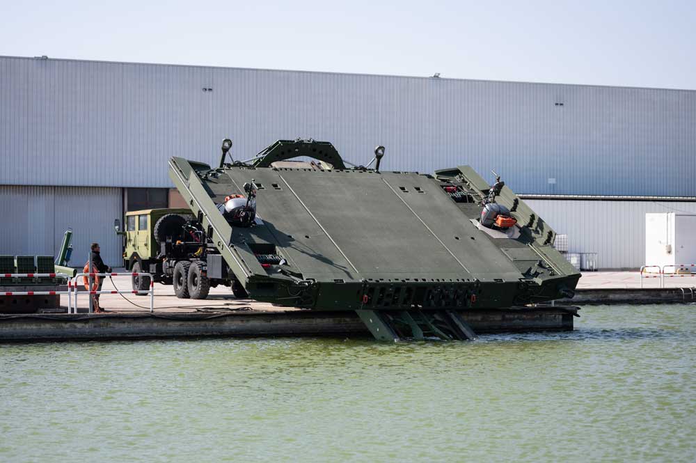 A l’occasion de MSPO, CSI présentera le Pont Flottant Motorisé (PFM) qui équipera les Forces Armées Polonaises dans les prochaines années. Avec une capacité de franchissement MLC 90T / 100W, le PFM peut être déployé dans 2 configurations : pont ou ferry.